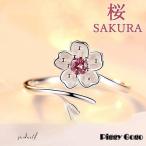 指輪 レディース お花 桜 さくら ダイヤリング フラワー サイズフリー シルバー925 プラチナ仕上げ 春 女性 母の日ギフト
