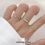指輪 レディース リング 5点セット パール 波 変形 極細 ゴールド シンプル 重ね付け 組み合わせ自由 アクセサリー おしゃれ カジュアル 女性