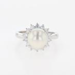 パール デザインリング プラチナ 指輪 メレダイヤ 真珠 リング 11.5号 Pt900 パール ダイヤモンド レディース 中古