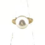 ミキモト MIKIMOTO パール デザインリング YG イエローゴールド 指輪 メレダイヤ 真珠 リング 7.5号 K18 パール ダイヤモンド レディース 中古