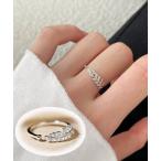 指輪 ダブルチェーンリング レディース 女性用 オープンリング ラインストーン ひし形 ウェーブ ギザギザ クロス 十字架 おしゃれ 華やか かわいい