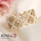 指輪 リング レディース フェイクパール ラインストーン ゴールド シルバー アクセサリー セレモニー 結婚式 返品交換不可[mb]