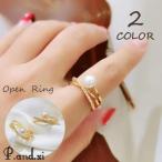 指輪 オープンリング レディース アクセサリー リングカフ フェイクパール ラインストーン キラキラ 調節可能 きれいめ おしゃれ かわいい 女
