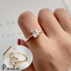 指輪 リング フリーサイズ アクセサリー レディース オープンリング ゴールドカラー スクエアカット ラインストーン 一粒 存在感 華奢 シンプル お