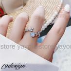 オープンリング 指輪 レディース 女性 アクセサリー ファッション雑貨 ラインストーン 月長石風 ムーンストーン風 シルバーカラー シンプル クール
