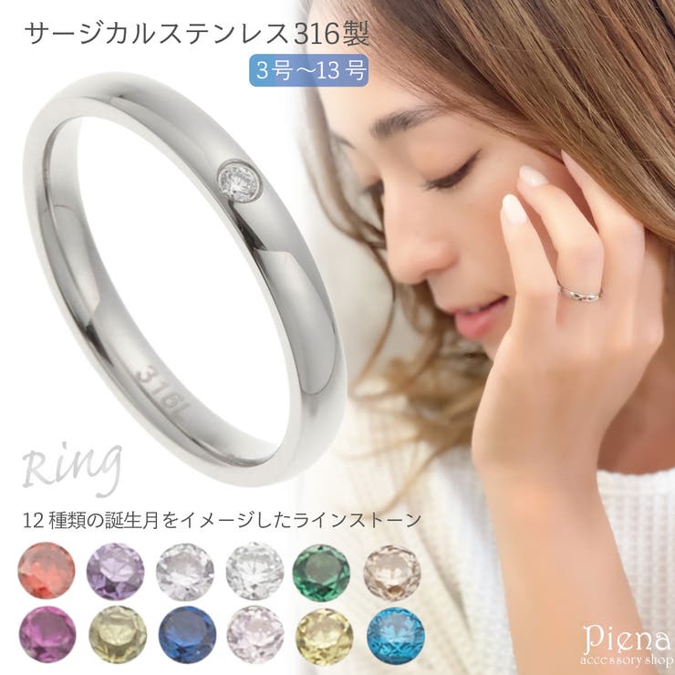 【10%OFFクーポン!2/23(月)1:59まで】アクセサリーショップPIENA リング レディース 甲丸 サージカル ステンレス製 ラインストーン 誕生石 1月 2月 3月 4月 5月 6月 7月 8月 9月 10月 11月 12月 1粒 シンプル