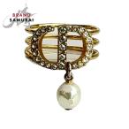 美品 Dior ディオール サイズM ゴールド メタル/ラインストーン 指輪 リング ラインストーン パール 11号 レディース 405806