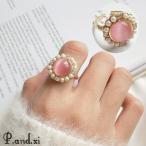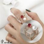 指輪 リング フリーサイズ アクセサリー レディース シルバー925 ゴールドカラー ピンク フェイクパール ラインストーン オープンリング 女性用