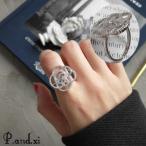 指輪 オープンリング アクセサリー レディース フリーサイズ シルバー925 ローズ バラ 存在感 モチーフ 大ぶり ラインストーン ファッション小物