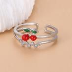 指輪 リング ローズゴールド シルバーカラー さくらんぼ チェリー ラインストーン 記念日 アクセサリー おしゃれ シンプル 可愛い レディース ジュエリー