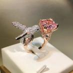 ピンクゴールド ローズゴールド ハート ラインストーン ジルコニア ミスティックトパーズ シルバー925 レディース ジュエリー リング 指輪