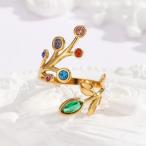【送料無料】 指輪 リング ブレスレット ラインストーン ステンレス ゴールド レディース マラカイト 目 アイズ ビート パターン オープン 316L スチール ジュエリー 18K プレート セット
