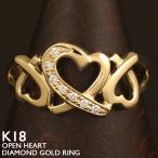 18金 リング レディース ダイヤモンド 指輪 K18 ハート オープンハート 18K 華奢 シンプル イエローゴールド ピンクゴールド プラチナ ラインストーン 小さい サイズ ジュエリー 金属アレルギー対応 女性 デザインリング