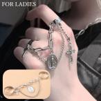 連結チェーンリング レディース 指輪 2連 ダブル オープン リングセット 十字架 クロス パンク ロック ダンス ストリート ヒップホップ系 フリー