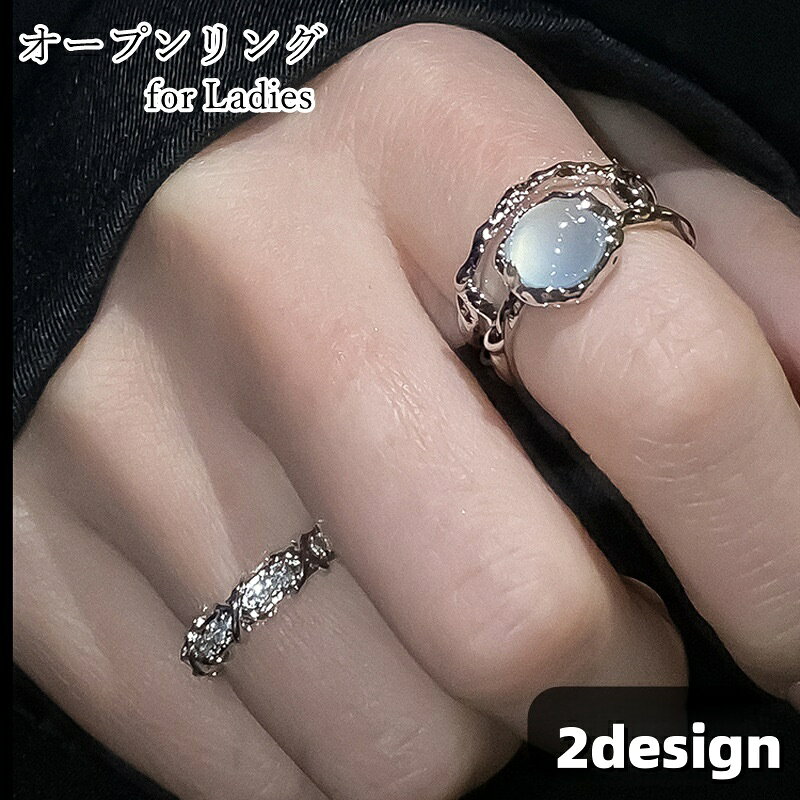 送料無料 オープンリング 指輪 レディース 女性 アクセサリー ファッション雑貨 ラインストーン 月長石風 ムーンストーン風 シルバーカラー シンプル クール かっこいい 可愛い キュート おしゃれ パンクロック風 プレゼント ギフト