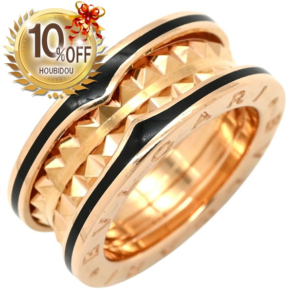 \10%OFFクーポン対象/ブルガリ BVLGARI B-zero1 ビーゼロワン リングロック 2バンド リング・指輪 ジュエリー K18PG(ピンクゴールド) セラミック メンズ レディース ブラック系 / ゴールド系 【中古】