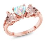 Gem Stone King 2.18カラット シミュレイテッド ホワイトオパール リング 指輪 レディース 天然 ローズクォーツ シルバー925 1