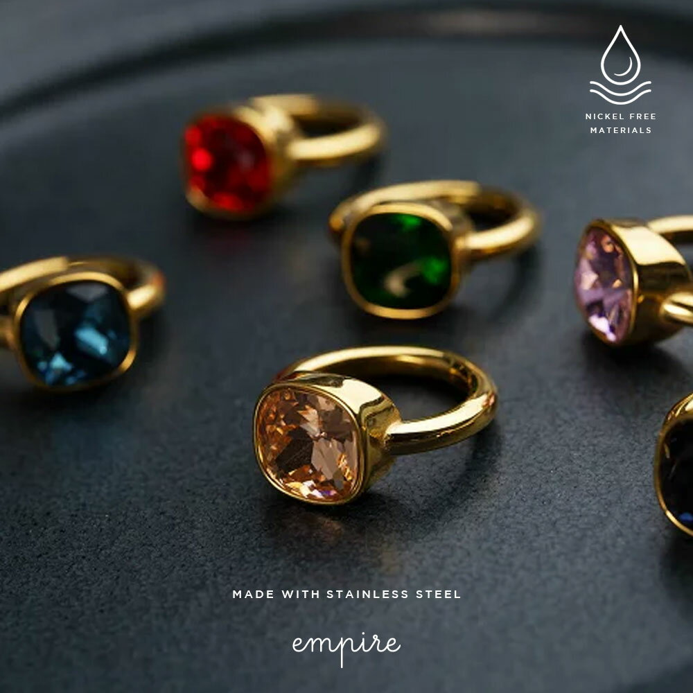 リング ステンレス 18Kコーティング 指輪 金属アレルギー レディース 可愛い 大人 ゴールド 11号 14号 16号 つけっぱなし サージカルステンレス カボション 人工水晶 大粒 多面カット ヌードリング empire