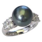 パール リング レディース 指輪 真珠タヒチ黒蝶真珠 プラチナ ダイヤモンド 12石 合計0.60ct 真珠の径 11mm グリーン系 プレゼント ギフト 自分買い pu