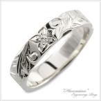 K18 ハワイアンジュエリー リング レディース ホワイトゴールド 指輪 手彫り ヒラウチ ストレート シンプル 結婚指輪 マリッジリング ギフト クリスマス