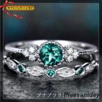 指輪 レディース エメラルドカラー緑色CZダイヤモンド 本組重ね付けリング プチプラ 女性