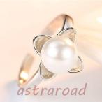 指輪 レディース パールリング シンプル サイズフリー シルバー925 結婚式 プラチナ 女性