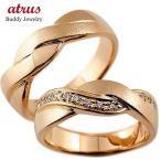 結婚指輪 18金 ペアリング 2本セット ダイヤモンド スパイラル 幅広 太め ピンクゴールド 18k メンズ レディース つや消し シンプル 送料無料 セール 爆買
