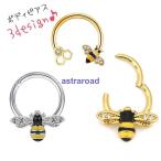 ボディピアス 鼻ピアス レディース メンズ ユニセックス 女性 男性 男女兼用 リング型 サーキュラーバーベル型 ラインストーン 蜂 ハチ ゴールドカ