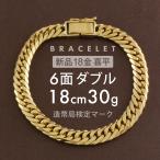 18金 喜平 ブレスレット 30g 18cm 6面 ダブル 造幣局検定付 幅7.6mm K18 アンクレット チェーン メンズ レディース 中折 金 誕生日 プレゼント ギフト