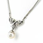 パール デザインネックレス プラチナ ペンダント メレダイヤ 真珠 ネックレス Pt850 パール ダイヤモンド レディース 中古