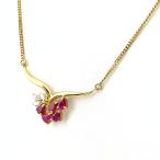 ルビー デザインネックレス YG イエローゴールド ペンダント ネックレス K18 ルビー ダイヤモンド レディース 中古