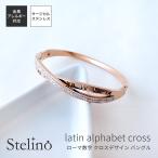 レディース バングル ブレスレット サージカルステンレス製 ローマ数字 パヴェ 交差デザイン ピンクゴールド 金属アレルギー対応 きれいめ