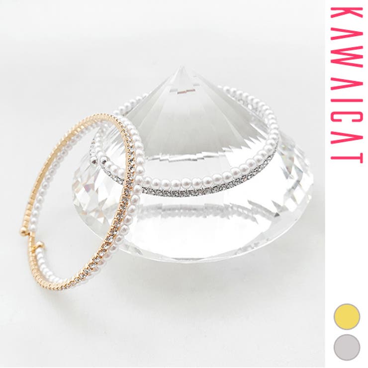 【10%OFFクーポン!11/27(木)1:59まで】KawaiCat ブレスレット レディース バングル パール ラインストーン アクセサリー 上品 おしゃれ 大人 韓国 to25850 アクセサリー