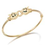 K18YG パンサーモチーフ エナメル ジルコン バングル イエローゴールド 17.5cm 8.7g レディース 誕生日 プレゼント 中古