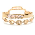 【天白】HERMES エルメス シェーヌダンクル ケリー ドゥブルトゥール ブレス バングル SH K18PG 750 ピンクゴールド ダイヤ