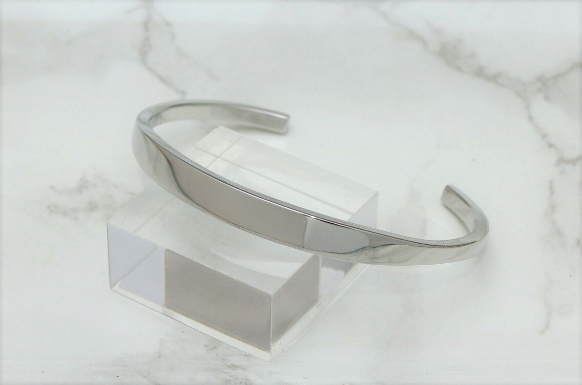 【SALE】レディースバングル 刻印可能 名入れ アレルギーフリー サージカルステンレス316L ウェーブ ツイスト 細身 4SBG047SV クリスマス 記念日 誕生日 ホワイトデー プレゼント