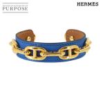 新品同様 エルメス HERMES シェーヌダンクル レザー バングル ブルー ゴールド アクセサリー Chaine d'Ancre Bangle 90318853