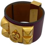 エルメス HERMES コリエ ド シアン ブレスレット バングル 腕輪 スタッズ メドール ブレスレット GP レザー パープル レディース 中古