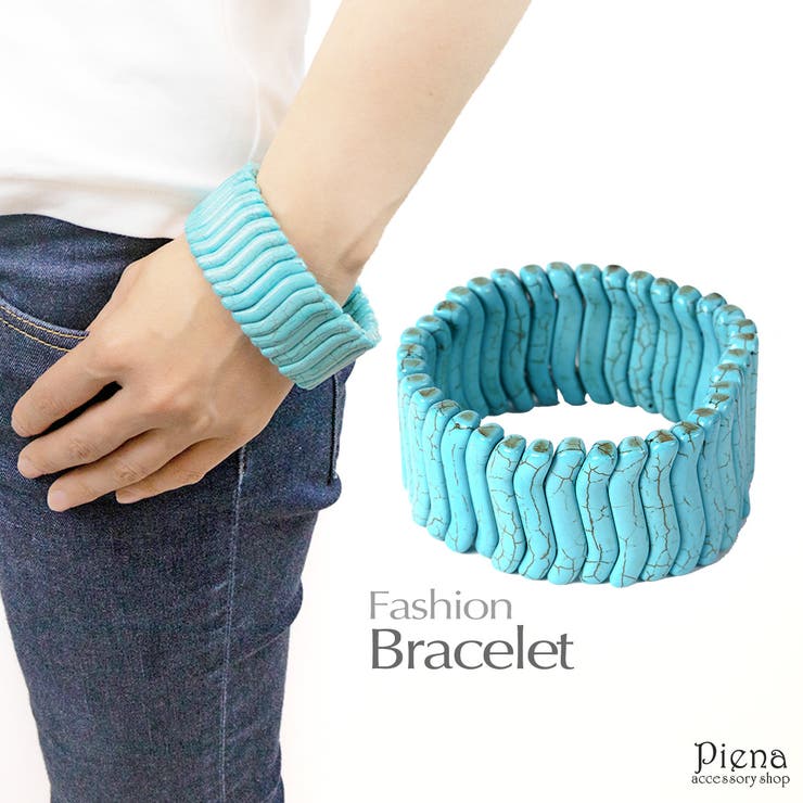 【10%OFFクーポン!11/27(木)1:59まで】アクセサリーショップPIENA ブレスレット レディース バングル メンズ ユニセックス 兼用 ブレス アクリル ゴム 簡単着脱 ターコイズ風 おしゃれ カッコいい太め 存在感 ブルー プレゼント ギ