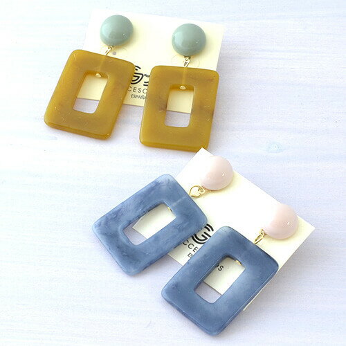 【15%OFFクーポン】レディース ピアス マーブル 小物 アクセサリー ジュエリー アクリル スクエア 3連 トレンド 韓国アクセサリー バイカラー