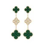 ヴァン クリーフ&アーペル Van Cleef & Arpels マジックアルハンブラ ピアス 3モチーフ VCARO9II00 K18イエローゴールド YG マラカイト レディース ピアス ヴァン クリーフ&アーペル 【ローン48回払い無金利】【中古】