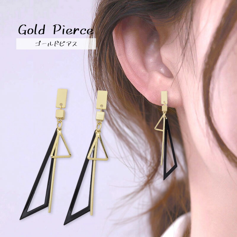 【15%OFFクーポン】三角デザインピアス 大きめ レディースピアス ロング 揺れる ピアス ゴールド ブラック