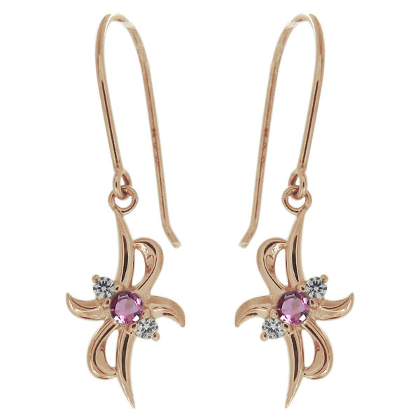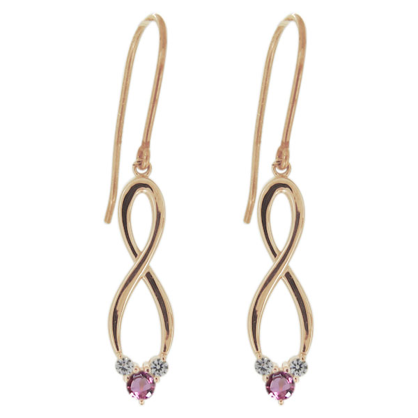 レディースピアス・ピンクトルマリン・フックピアス・無限・インフィニティ・18金 プレゼント 母の日 2024