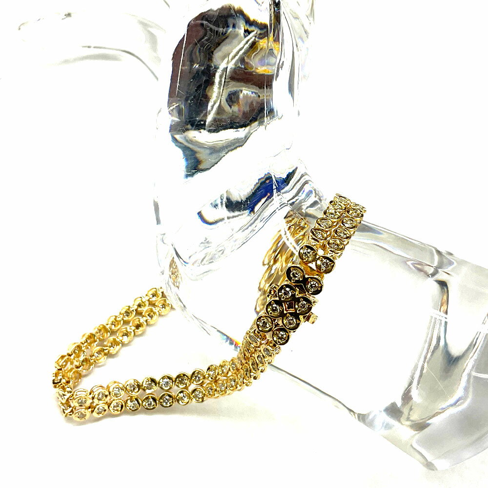 N【中古】【K18】2連テニスブレスレット 腕回り約18.5cm 総重量約12.9g K18YG D2.00ct ブレスレット イエローゴールド レディースブレスレット ノンブランドアクセサリー ダイヤモンド 質屋かんてい局那須塩原店★R2502877