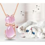 ネックレス ペンダント チェーン ストーン 猫 キャット かわいい キュート おしゃれ ピンク レディース 女性 アクセサリー ジュエリー おしゃれ雑