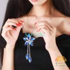 ネックレス ペンダント レディース 女性用 アクセサリー 首飾り ロング フラワー カラーストーン ラインストーン キラキラ おしゃれ きれいめ ゆら