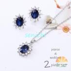 ネックレス ピアス 2点セット レディース アクセサリー 一粒 ブルー クリア オーバル ラインストーン シルバーカラー 揺れない 大ぶり 大きめ ゴ