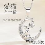 ネックレス レディース 猫ペンダント 遊び猫 星月 可愛い プラチナ仕上げ シルバー925 女性 娘 誕生日 母の日