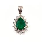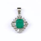 エメラルド デザインペンダントトップ プラチナ メレダイヤ ペンダントトップ Pt900 エメラルド ダイヤモンド レディース 中古