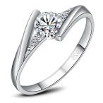 女性と互換性のあるファッションシルバーカラーリングシンプルなデザインホワイトラグジュアリーラウンドブライダルウェディング婚約指輪ジュエリービジュー